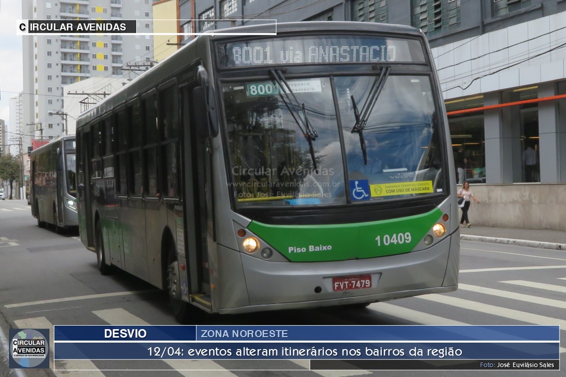 Ida: normal até a R. Clélia, Pça. Cornélia, R. Crasso, R. Coriolano, R. Dr. Augusto de Miranda, R. Pe, Chico, R. João Ramalho, R. Cayowaá, R. Dr. Homem de Melo, Av. Sumaré, Pça. Marrey Júnior, Av. Antártica, Pça. Tomás Morus, Av. Francisco Matarazzo, prosseguindo normal.