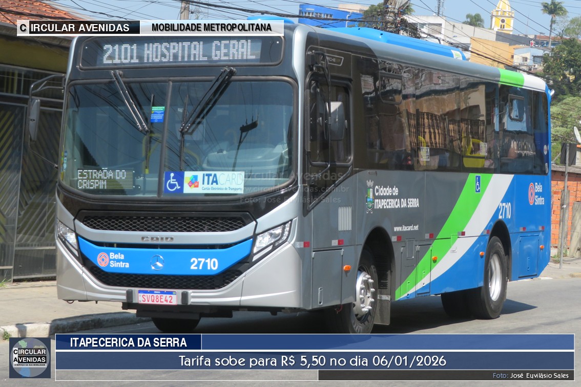 31/12/2025 | ITAPECERICA DA SERRA/SP – Foi publicado no Diário Oficial do Município de Itapecerica da Serra nesta terça, 30/12/2025, o Decreto nº 3.983 que autoriza o reajuste das tarifas de ônibus municipais de R$ 5,00 para R$ 5,50 a partir de 6 de janeiro. O reajuste foi de 10%.