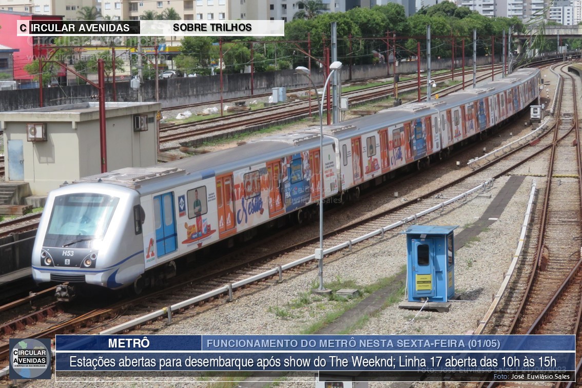 – Das 8h às 17h, os trens não circulam entre as estações Palmeiras-Barra Funda e Luz, para manutenção das chaves seccionadoras no trecho. Como opção para chegar à estação terminal, o passageiro pode utilizar a Linha 11-Coral.